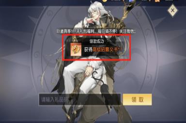 (2)点击后输入上述的礼包码后,点击领取即可得到奖励。