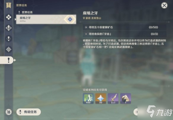在「龙脊雪山」地区中探索,拾取道具【奇异的「牙齿」】,获得【奇异的「牙齿」】后,将解锁世界任务「腐殖之牙」。