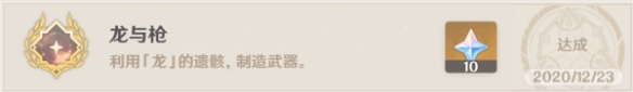 4. 回到营地,与「乌尔班」对话,选择【关于「龙牙」…】选项,将所需收集的材料和1个【北路长柄武器原胚】交付「乌尔班」,完成任务,最终获得4星锻造获取的长枪武器【龙脊长枪】和【图谱:龙脊长枪】。