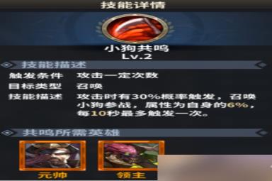 技能描述:召唤出3只小狗参与战斗,每只拥有英雄10%的属性。