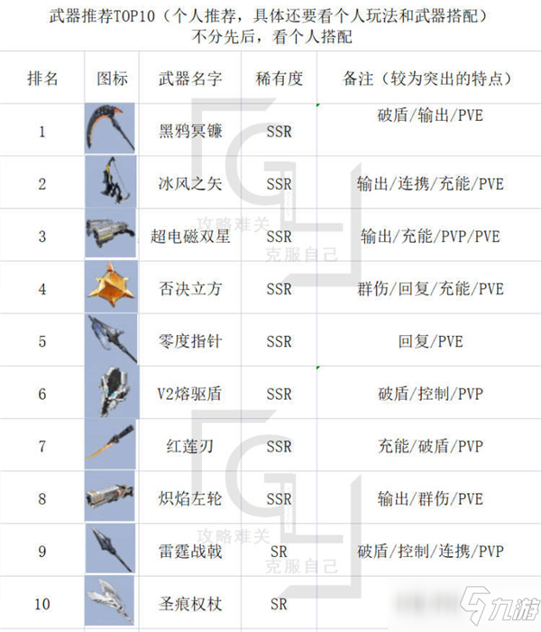 以上武器可以看情况各位根据自身抽取搭配练。0星排名。