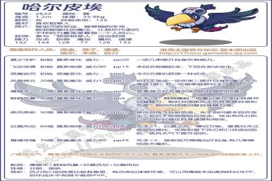 3、哈尔皮埃简析:风刃伤口的效果比较有意思,有点类似迷言环境,可以用电眼术迅速消耗对方PP,但作战水平有限不推荐PVP.